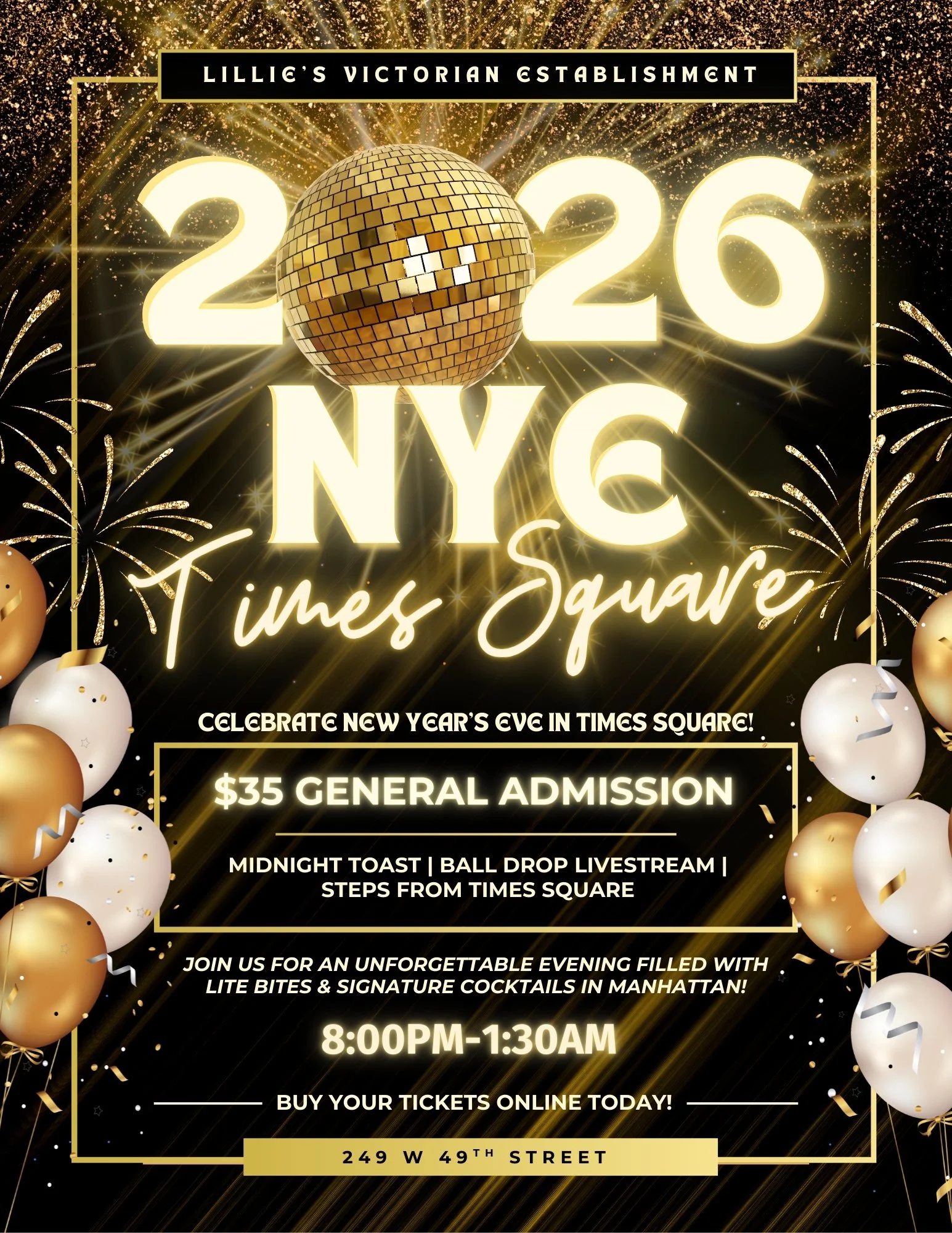 Ring in NEW YEAR'S EVE in the heart of TIMES SQUARE at LILLIE'S VICTORIAN ESTABLISHMENT!
